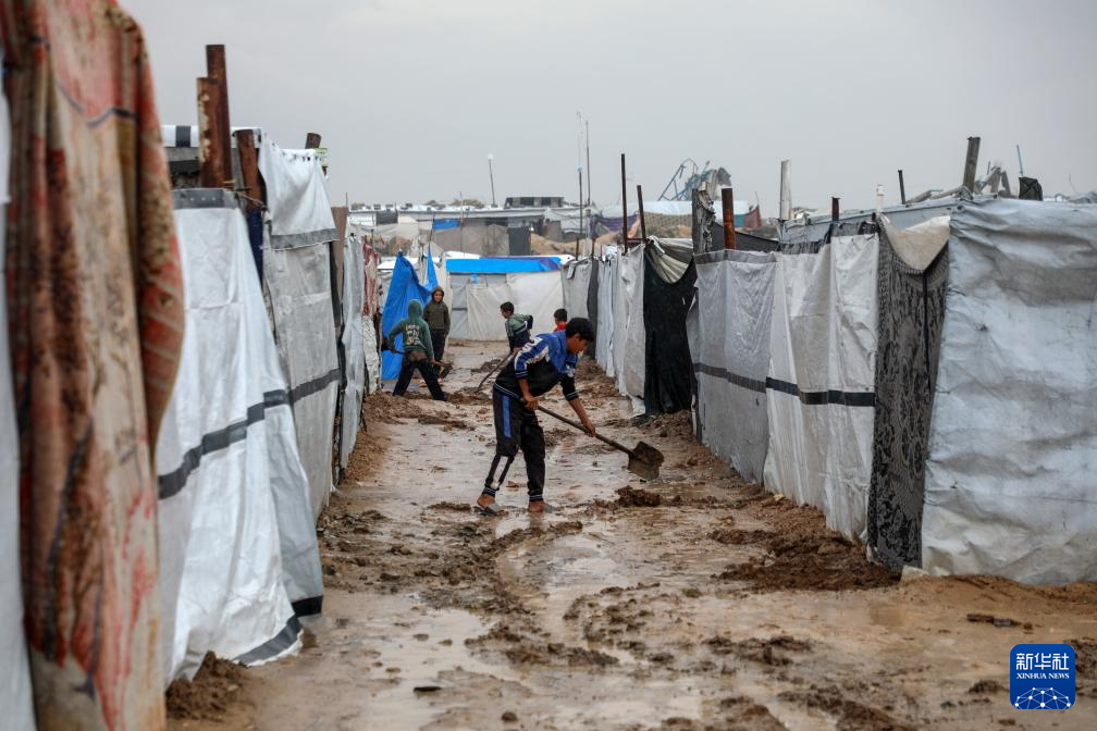 冬季的阴雨天气,让栖身于简陋帐篷的加沙地带巴勒斯坦民众生活更加艰难。