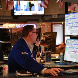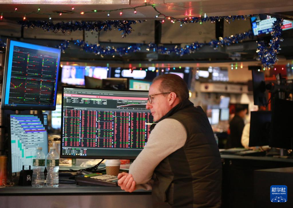 12月12日,一名交易员在美国纽约证券交易所交易大厅内工作。