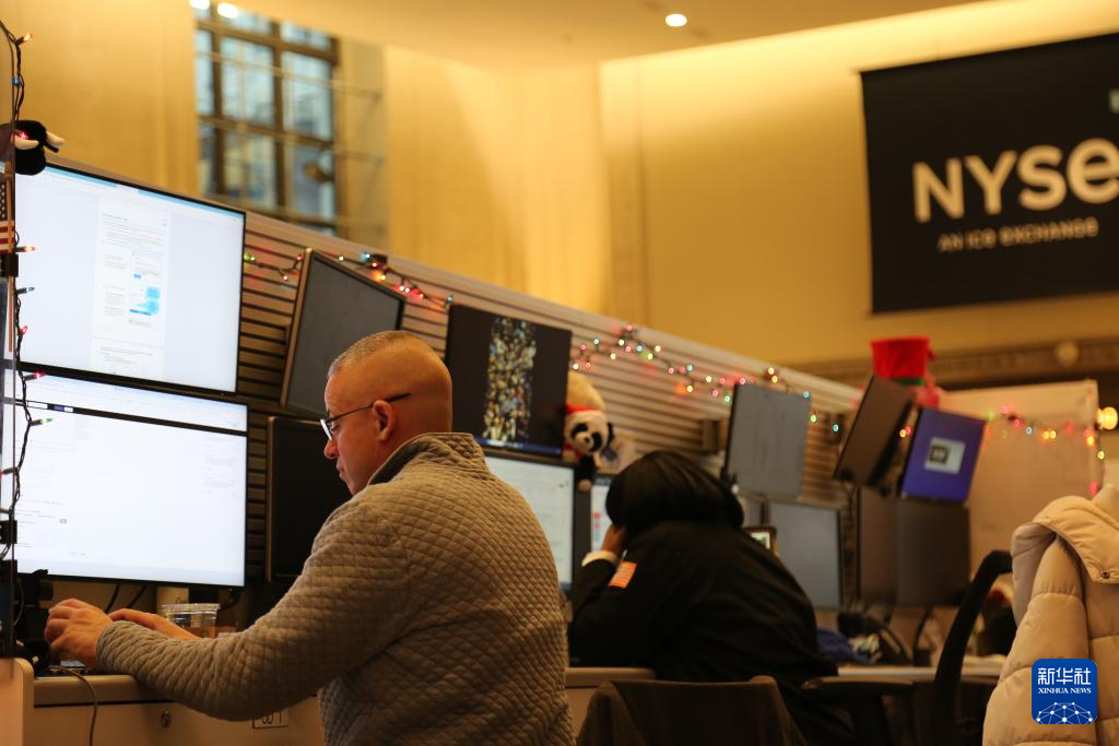 12月12日,交易员在美国纽约证券交易所交易大厅内工作。