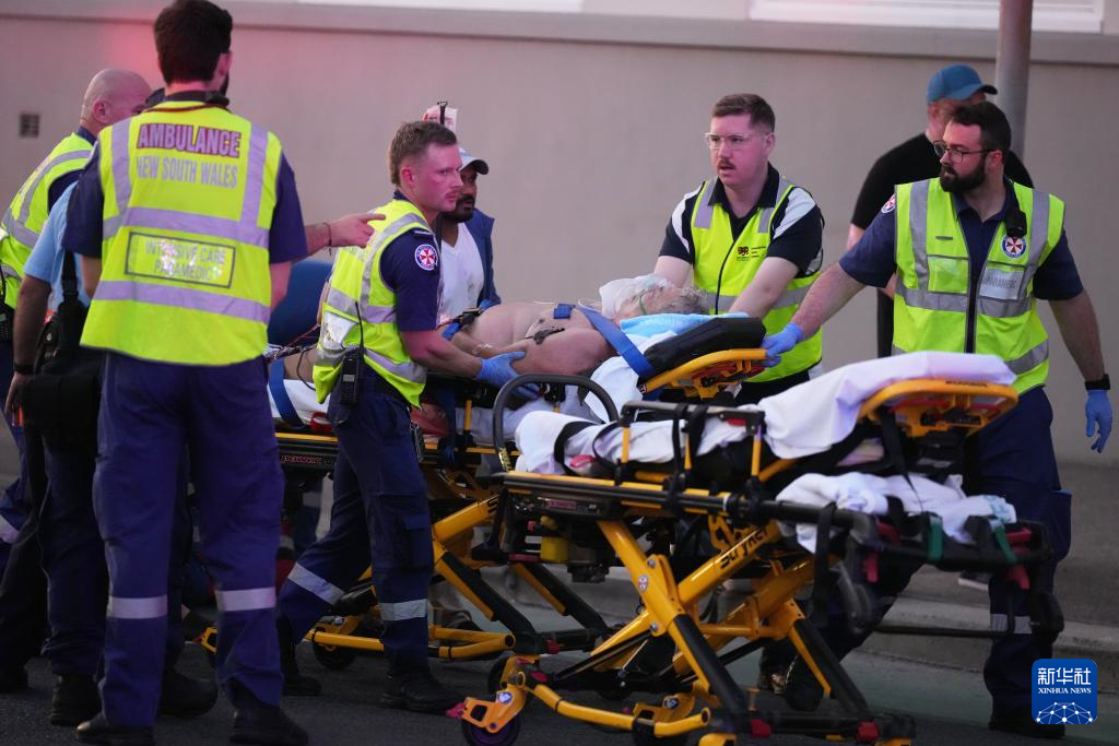 12月14日,在澳大利亚悉尼枪击事件现场,应急人员运送伤员。