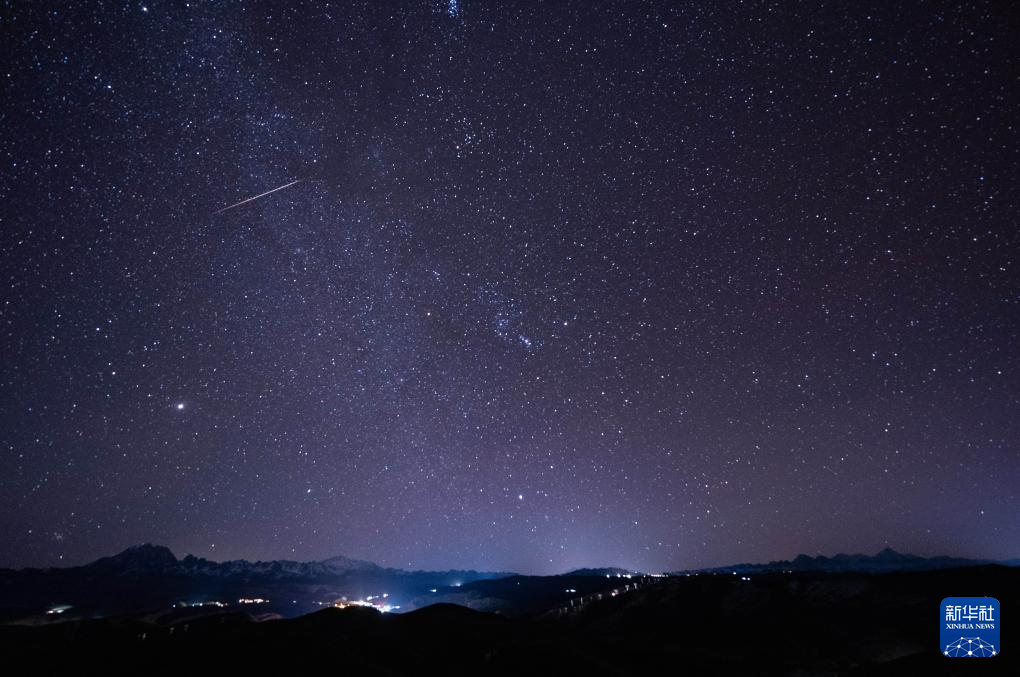 12月12日,在四川省康定市甲根坝镇提弄村,一颗双子座流星从贡嘎雪山上空划过。