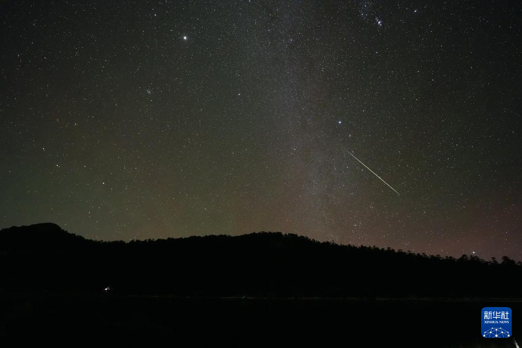 12月13日,在四川省甘洛县牛角海,一颗双子座流星在夜空中划过。
