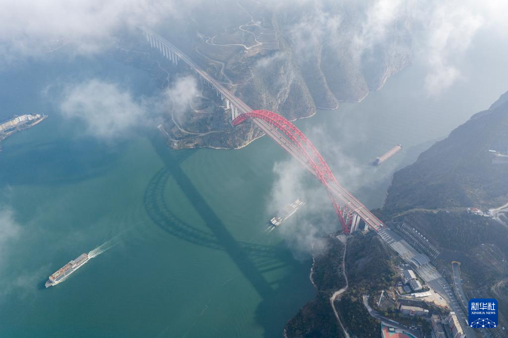 12月14日,船舶行驶在湖北省宜昌市秭归县西陵峡水域(无人机照片)。