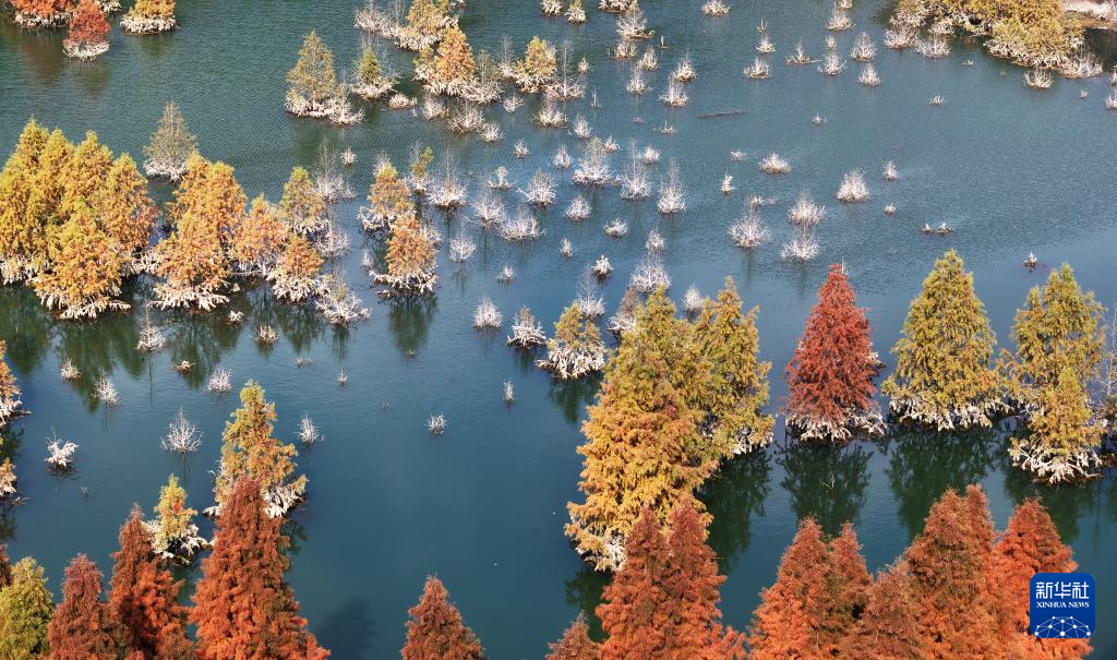 12月14日拍摄的昆明市盘龙区滇源街道甸尾村水杉湿地(无人机照片)。