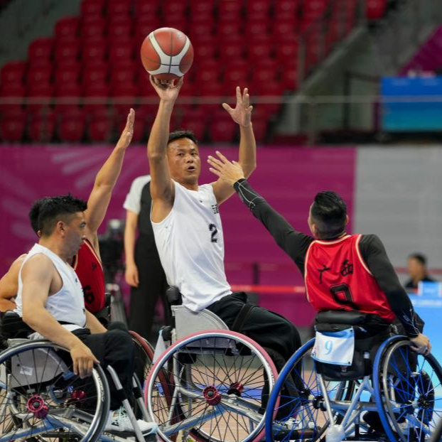 在全国第十二届残疾人运动会暨第九届特殊奥林匹克运动会轮椅篮球赛场上,来自雪域高原的西藏轮椅篮球队用轮椅上的拼搏与奋进,诠释着向上的力量。