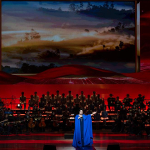 12月16日,在北京二七剧场举办的“中国梦·劳动美”2026新年音乐会上,演员在大合唱《亿万职工心向党》中歌唱。