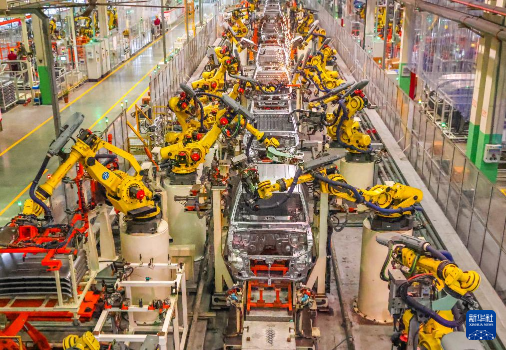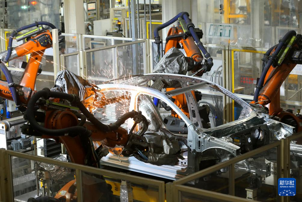 12月16日,在位于山东省青岛市即墨区的一汽大众青岛基地焊装车间,机器人在进行焊接作业。