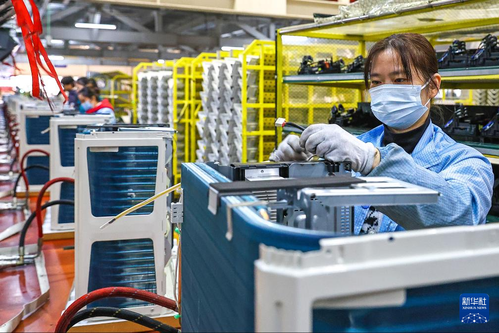 12月16日,在南京江宁高新技术产业开发区,工人在格力电器(南京)有限公司生产线上忙碌。