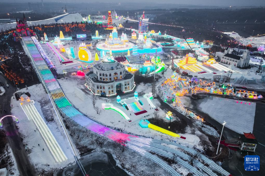 这是12月19日拍摄的长春市冰雪新天地景区(无人机照片)。