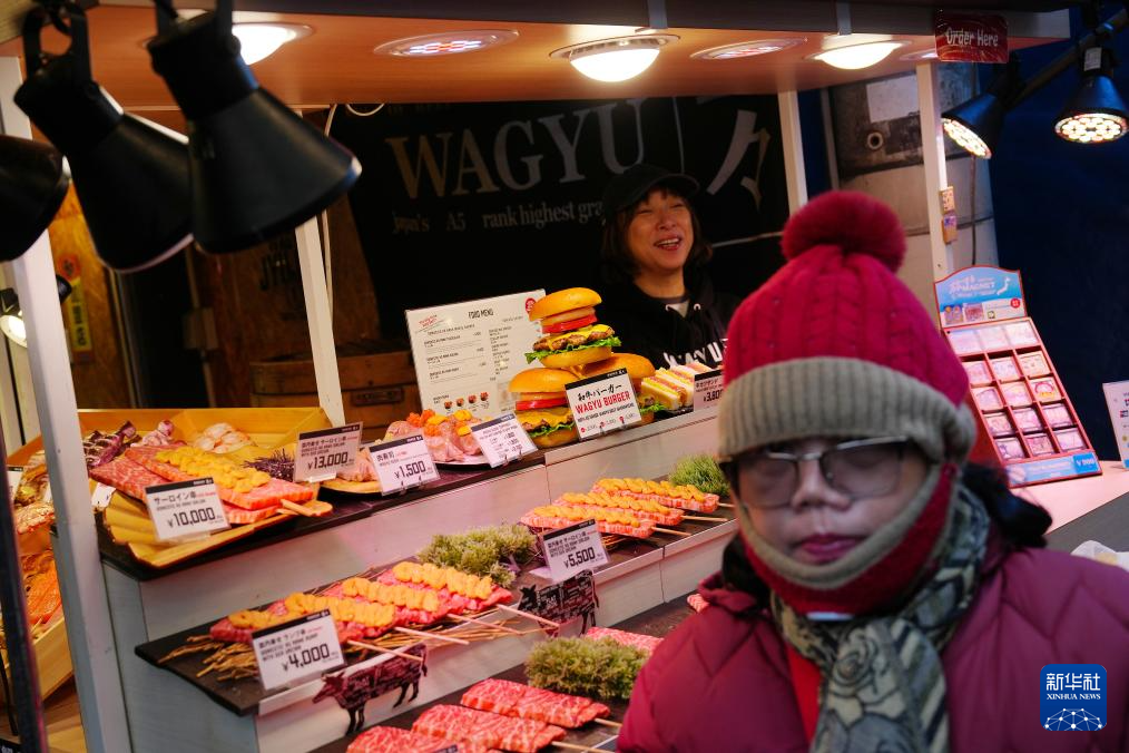 12月18日,在日本东京筑地站附近,顾客在一家店铺前选购。