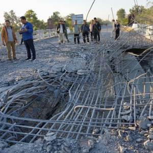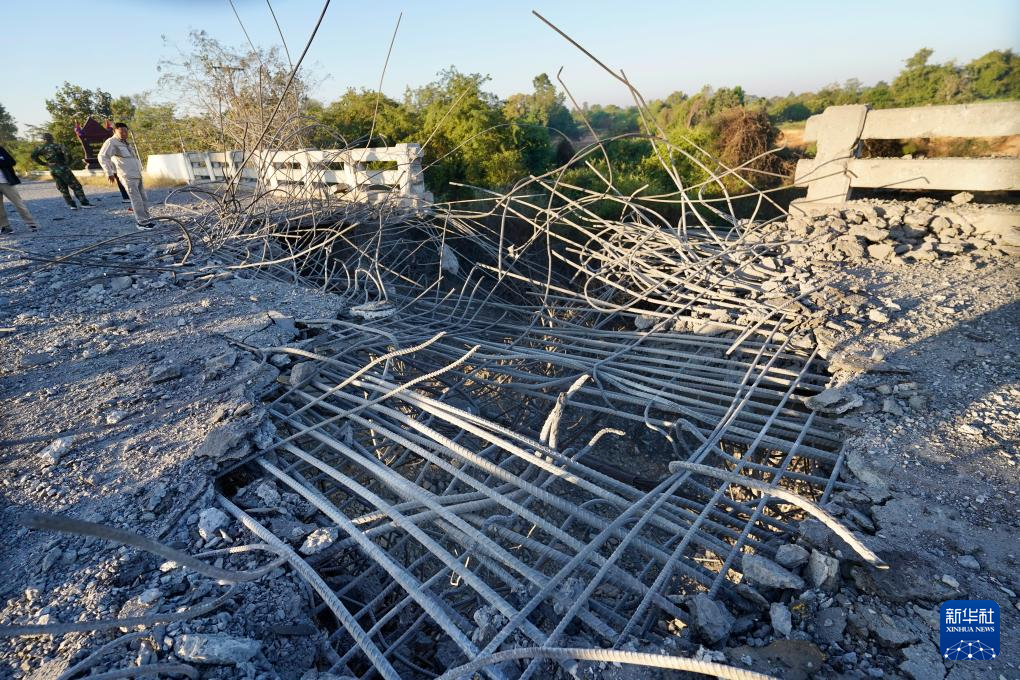 这是12月20日在柬埔寨奥多棉吉省与暹粒省交界处拍摄的被轰炸的桥梁。