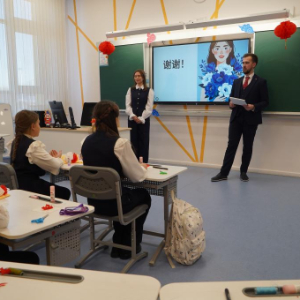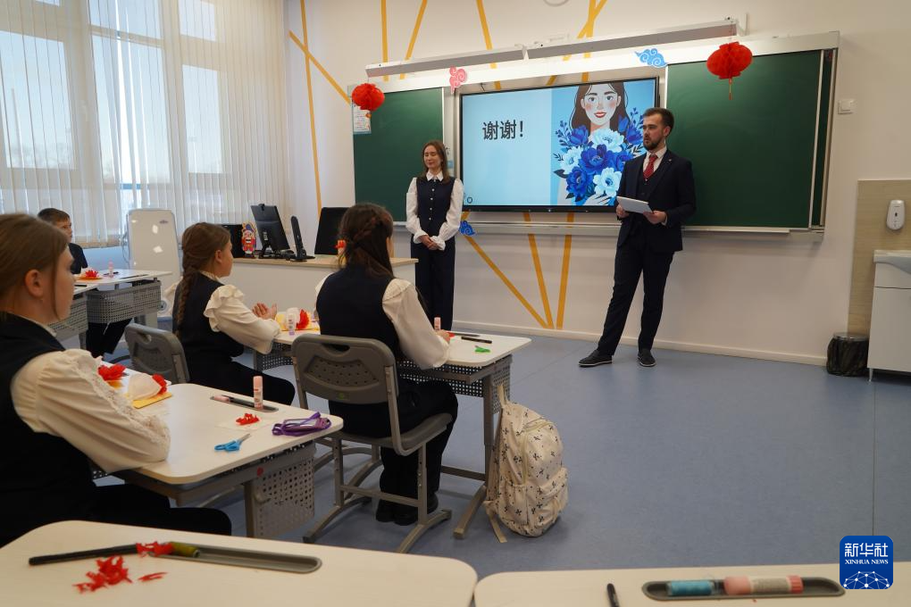 12月4日,在俄罗斯阿穆尔州斯沃博德内市,斯沃博德内俄气学校的学生在上中国文化课。