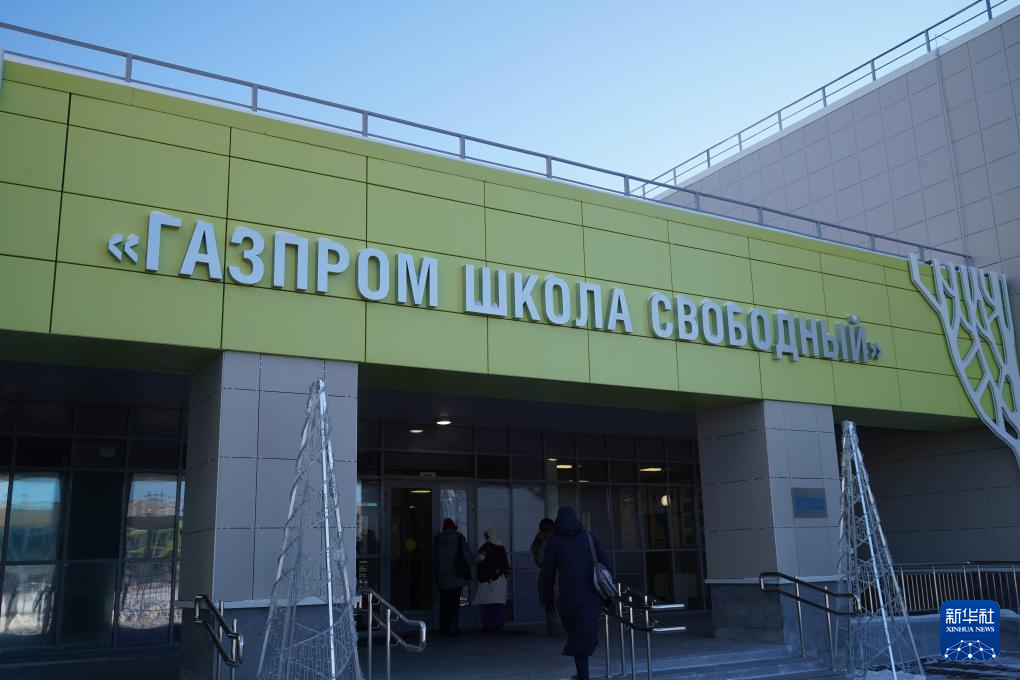 这是12月4日在俄罗斯阿穆尔州斯沃博德内市拍摄的斯沃博德内俄气学校入口。