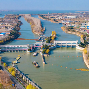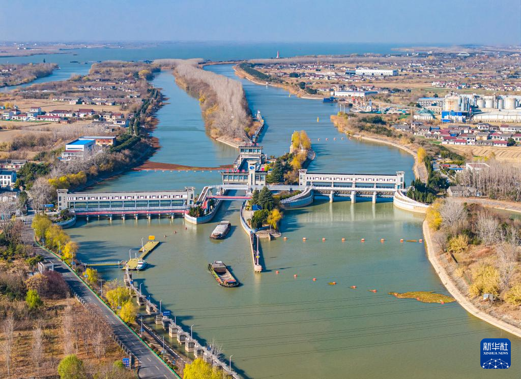 12月21日在江苏省扬州市江都区拍摄的南水北调东线一期工程运盐闸、邵仙套闸、邵仙闸洞(无人机照片)。