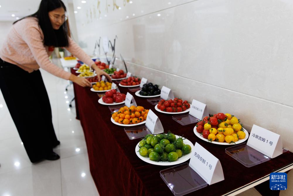 这是发布会现场展示的系列番茄新品(12月22日摄)。