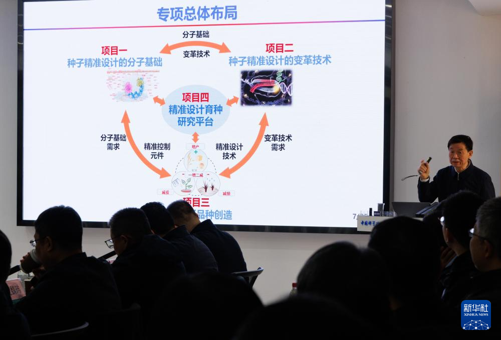 12月22日,在中国科学院遗传与发育生物学研究所举行的发布会上,“种子专项”首席科学家、中国科学院院士李家洋在介绍专项整体实施情况。