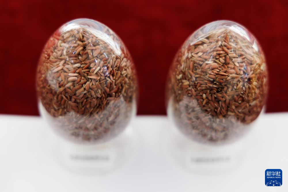 这是发布会现场展示的经过快速驯化的四倍体野生稻(12月22日摄)。