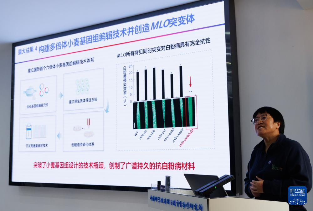 12月22日,在中国科学院遗传与发育生物学研究所举行的发布会上,中国科学院遗传与发育生物学研究所研究员高彩霞在介绍研究成果。