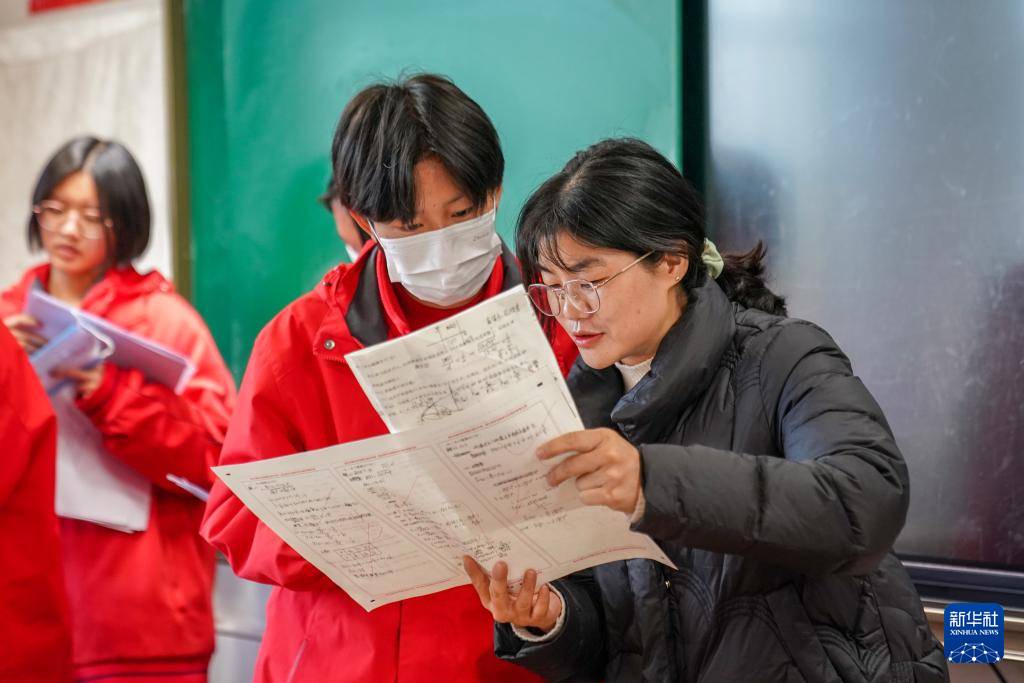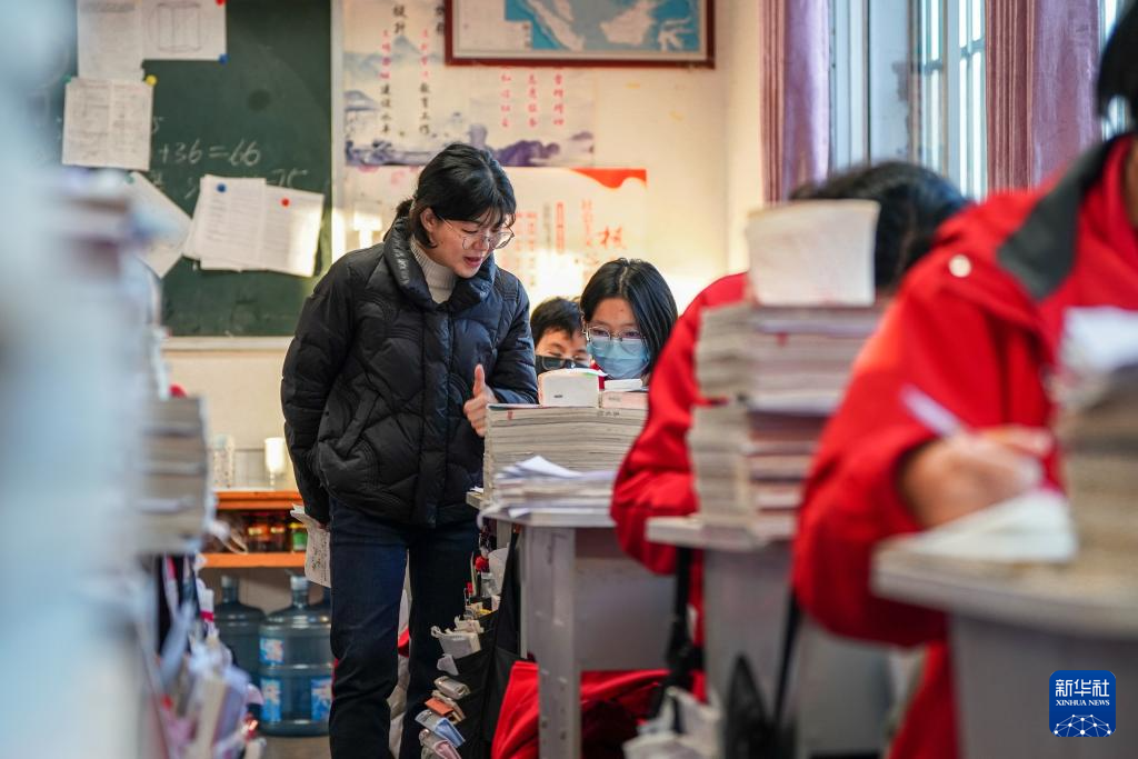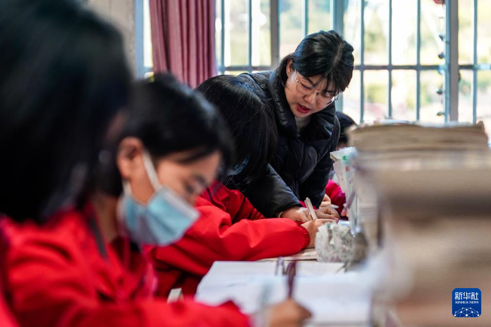 12月13日,华坪女高第一届毕业生、华坪女高数学教师周云丽在为学生讲解题目。