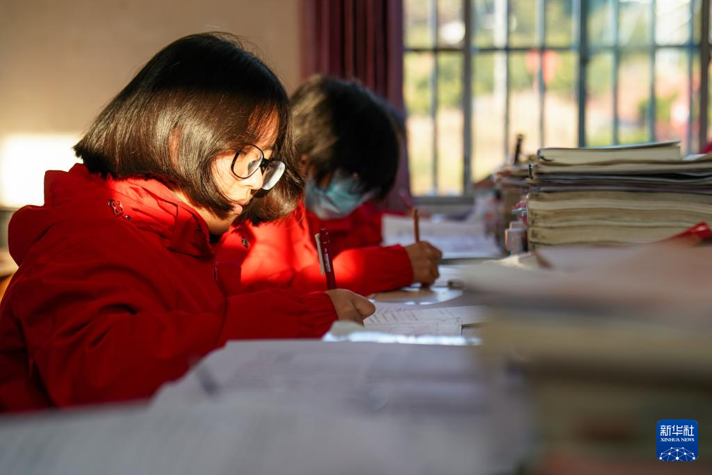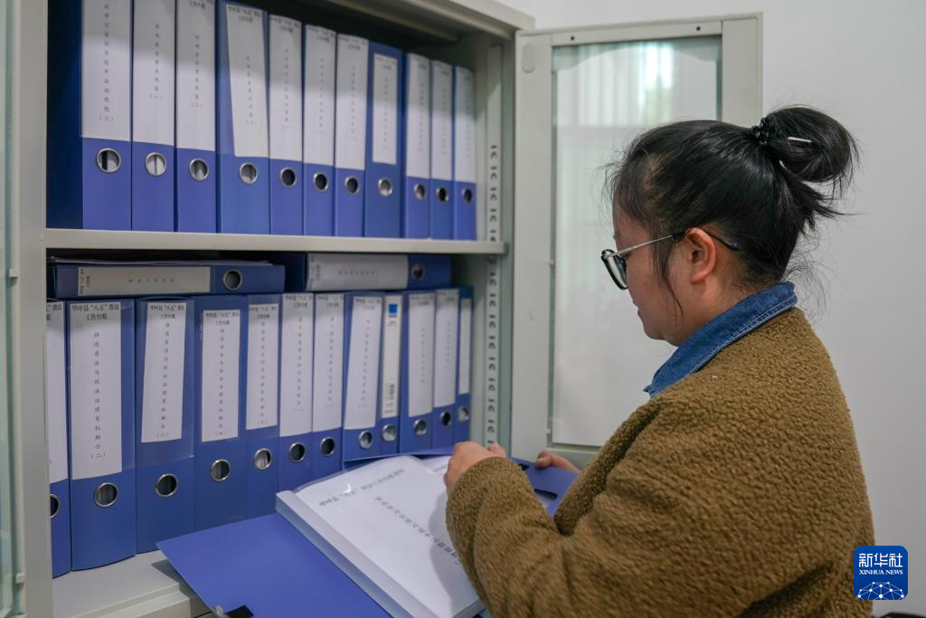 12月13日,华坪县司法局工作人员李佳宇在办公室整理资料。