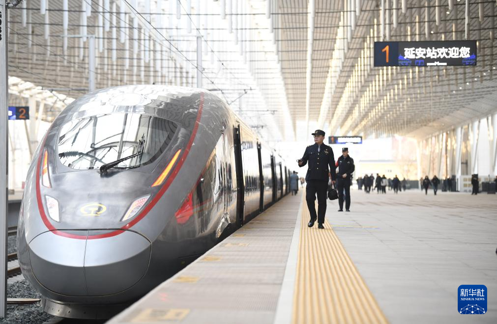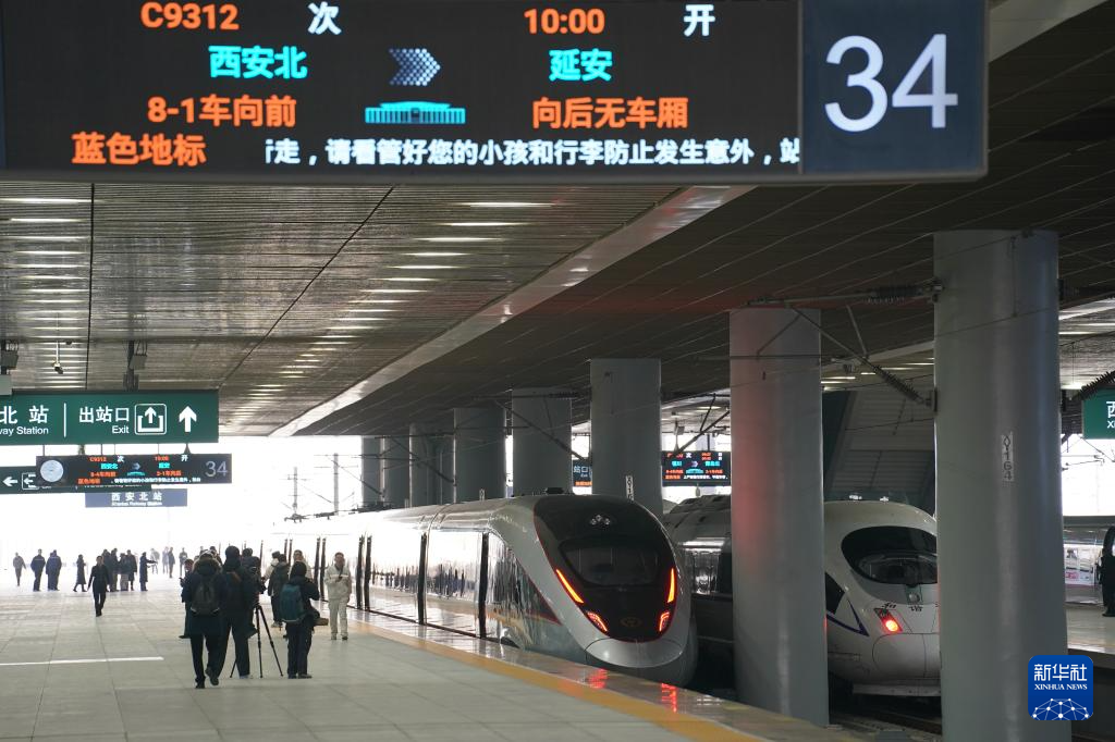 12月26日,西安开往延安的西延高铁C9312次首发列车驶离西安北站。