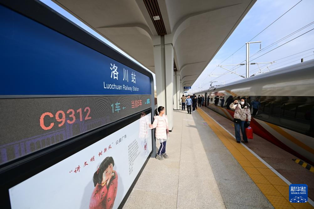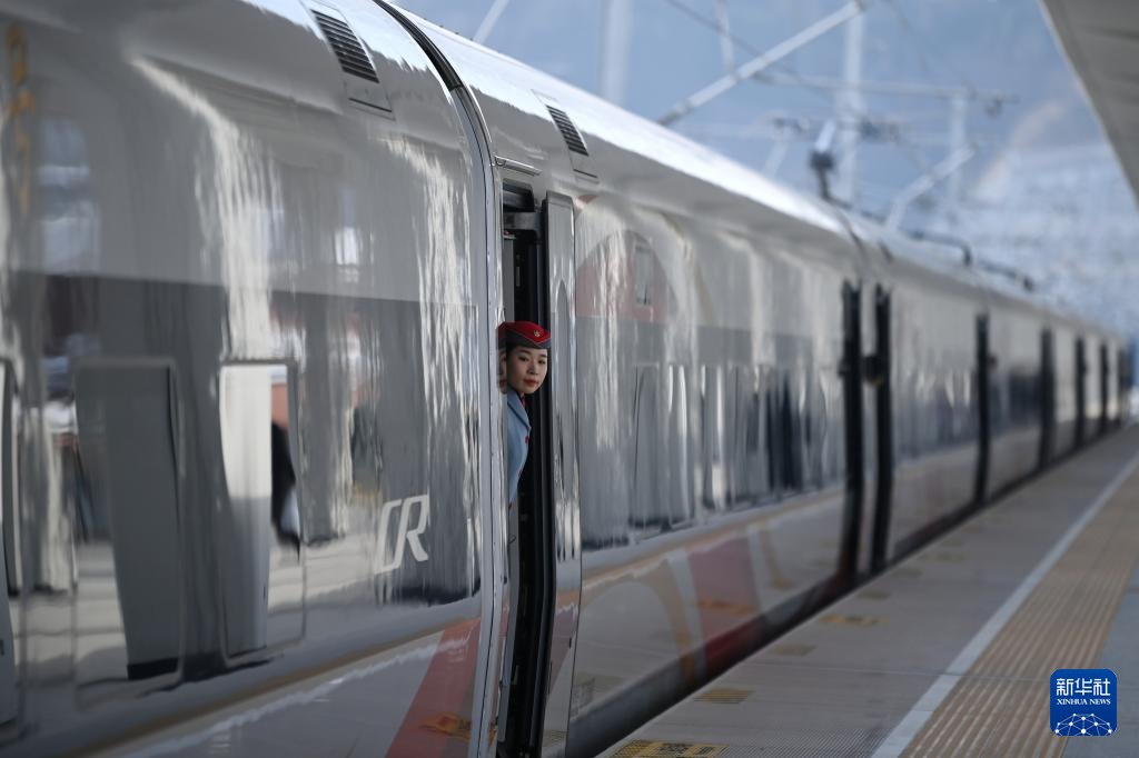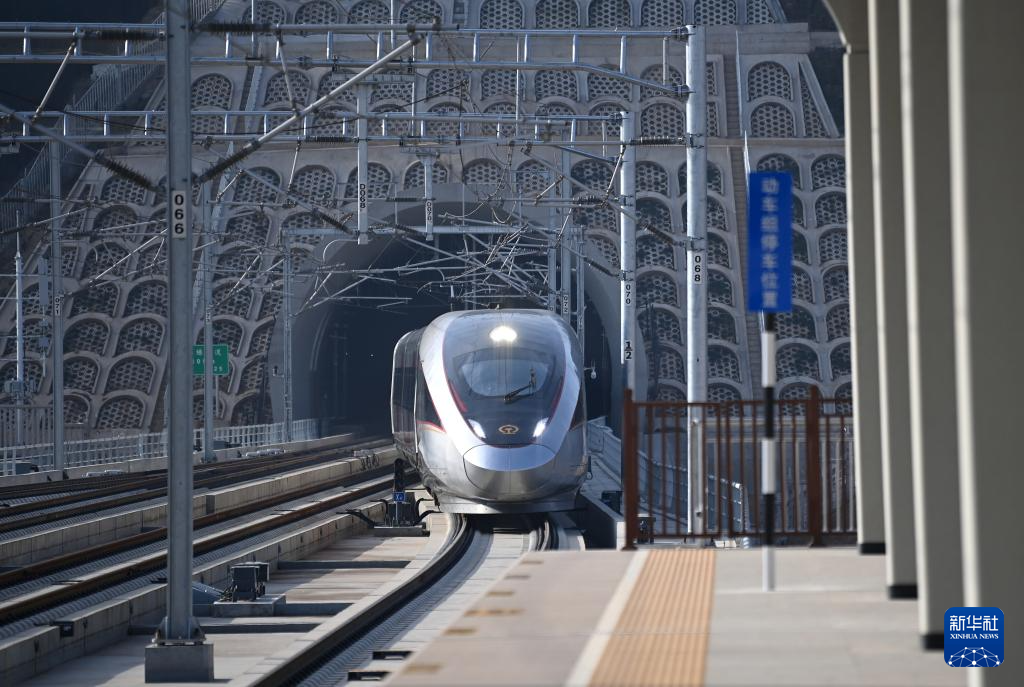 12月26日,西安开往延安的西延高铁首发C9312次列车停靠在富平南站。