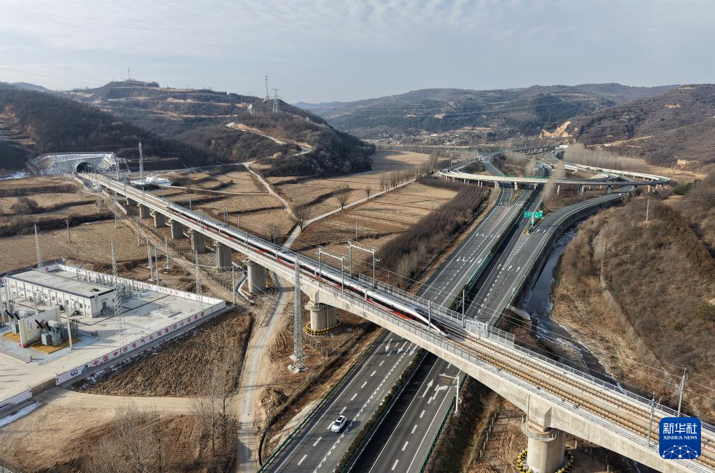 12月26日,西安开往延安的西延高铁首发C9312次列车从富平南站驶出。