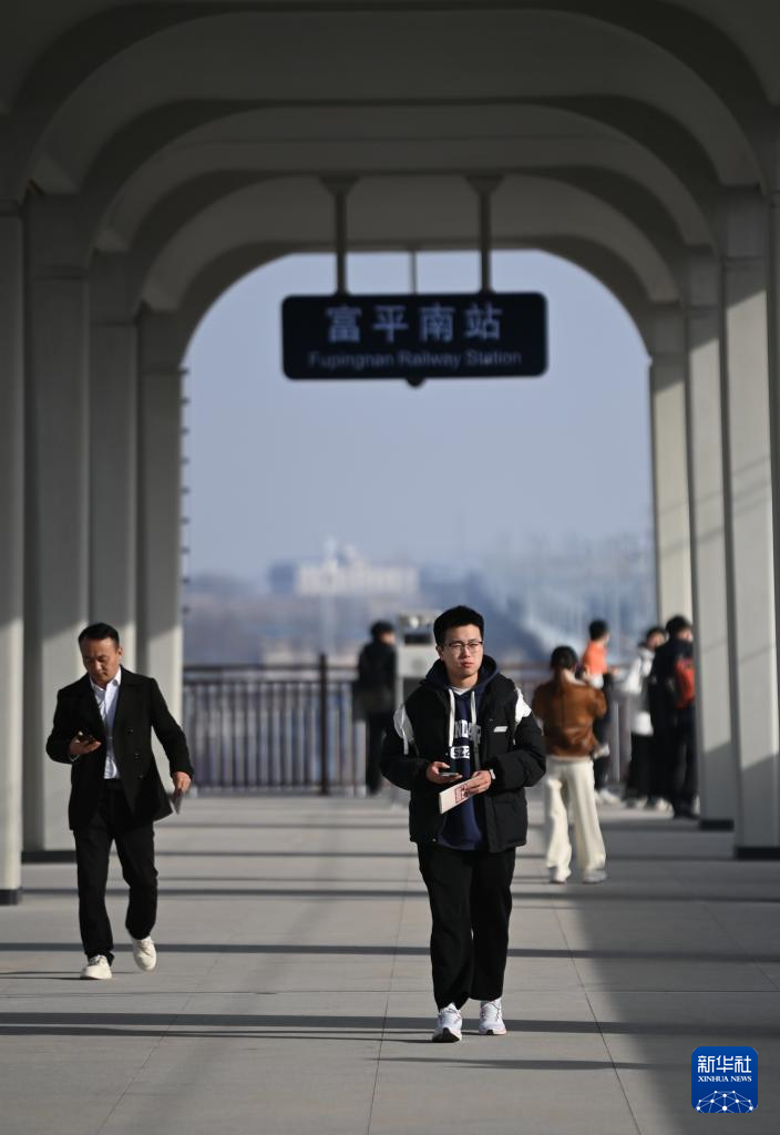 12月26日,乘客在西延高铁富平南站站台上准备出站。