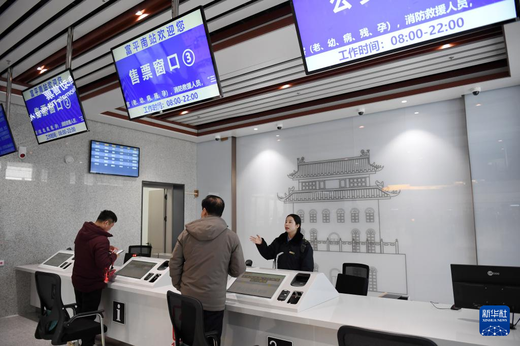 12月26日,乘客在西延高铁富平南站售票窗口购票。