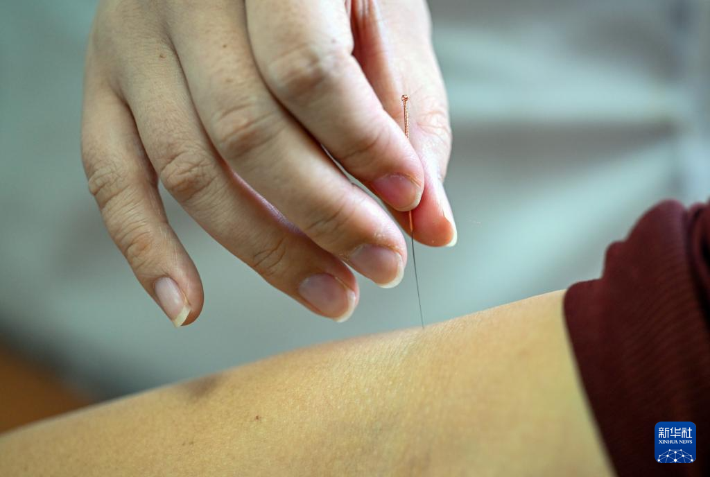 12月24日,在位于天津市河北区的达仁堂医院,专家对患者进行针灸治疗。