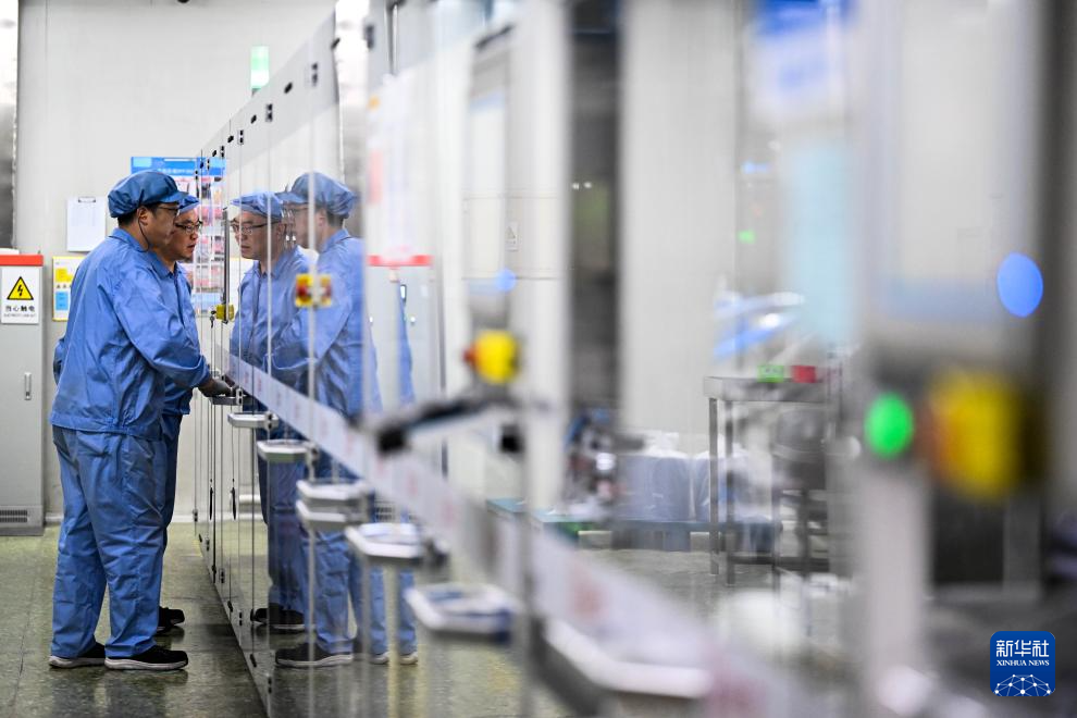 12月25日,在位于天津市北辰区的津药达仁堂第六中药厂,工作人员在滴丸生产车间查看生产设备。