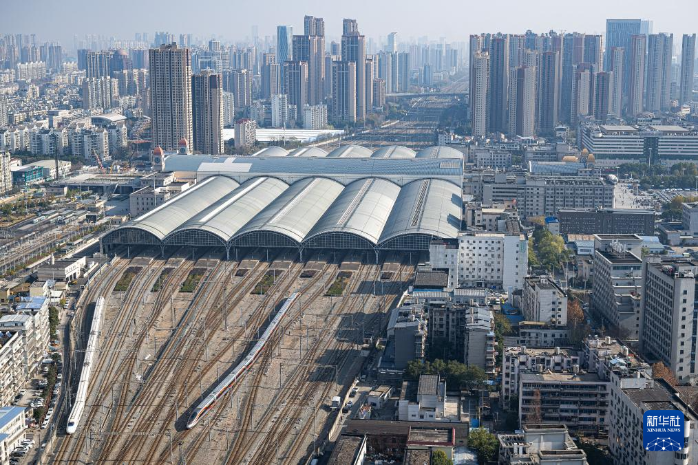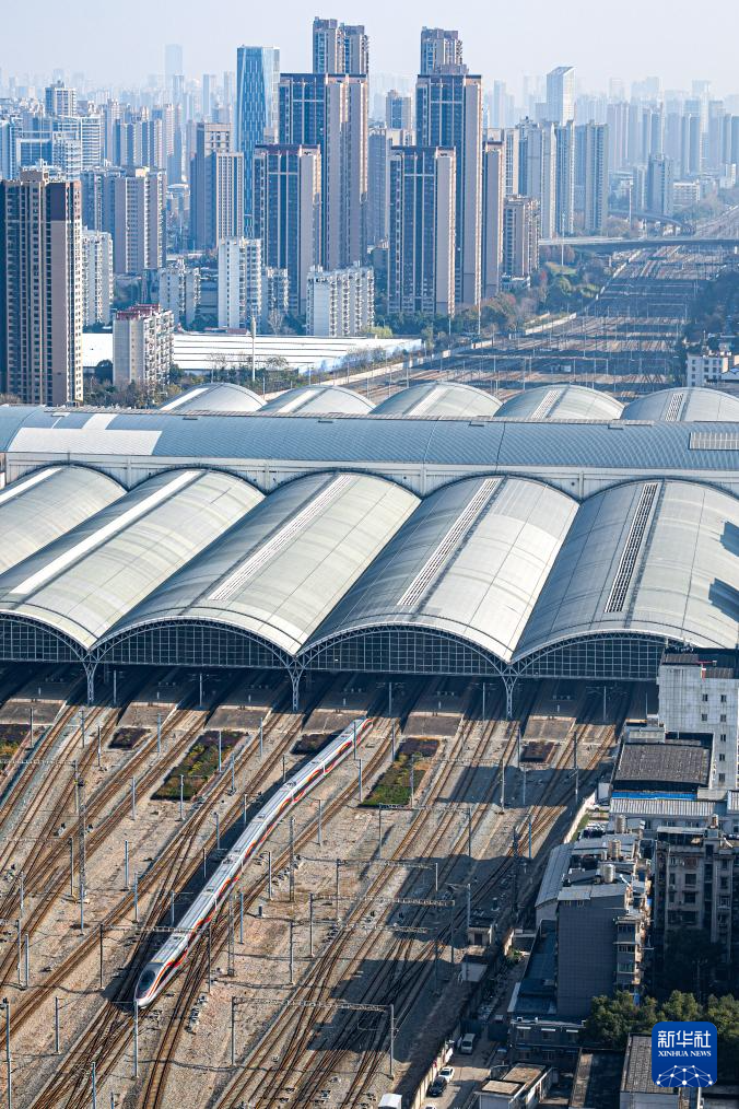 12月26日,列车驶入宜昌北站(无人机照片)。
