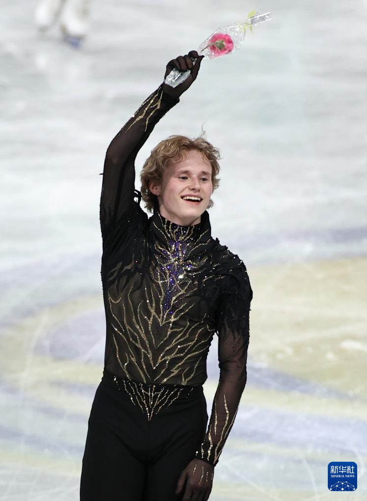 这是2025年12月6日,美国选手马里宁在2025-2026赛季国际滑联世界花样滑冰大奖赛总决赛男子单人滑自由滑赛后向观众致意。最终,他夺得男子单人滑冠军。