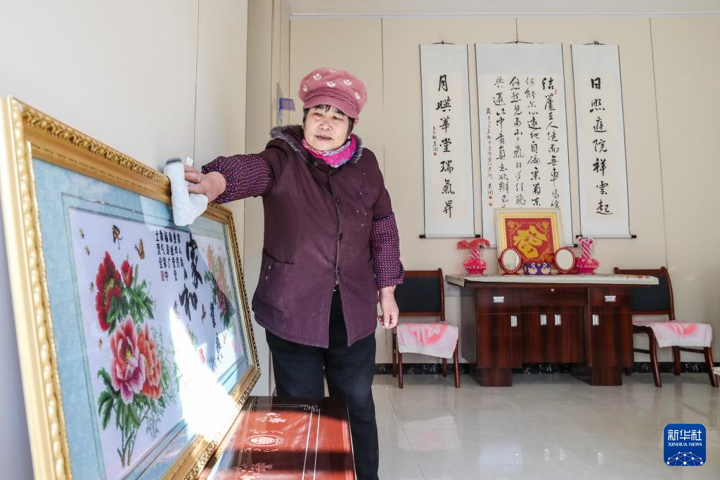 12月29日,村民赵玉真在榆中县马坡乡马莲滩村集中安置点的新家里打扫卫生。