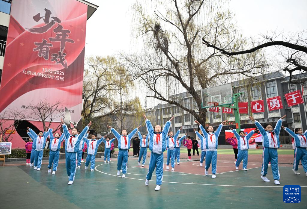 12月30日,学生在陕西省西安市后宰门小学《少年有戏》校园实景剧中表演节目。