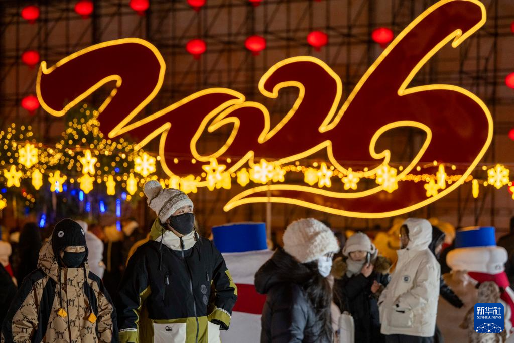 当日是2025年的最后一天,进入旅游旺季的“冰城”哈尔滨多处景点灯光璀璨,吸引众多游客前来跨年。