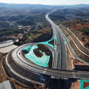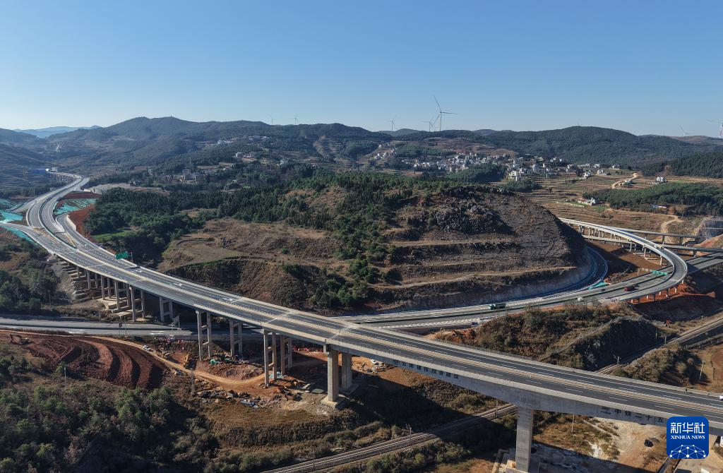 12月31日在云南省曲靖市拍摄的宣富高速公路(无人机照片)。