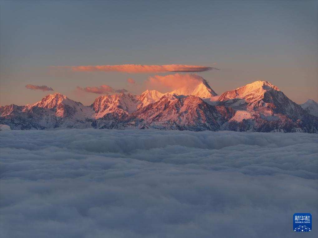 2026年1月1日在四川省泸定县拍摄的日出时分的贡嘎雪山。