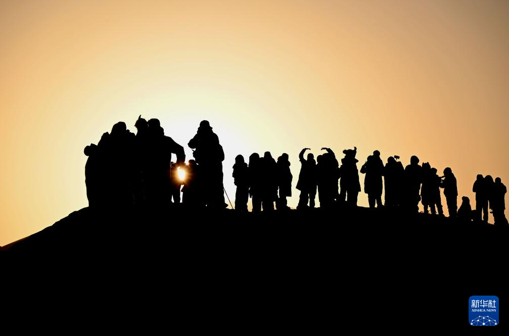 2026年1月1日,游客在甘肃省敦煌市鸣沙山月牙泉景区观赏大漠日出。