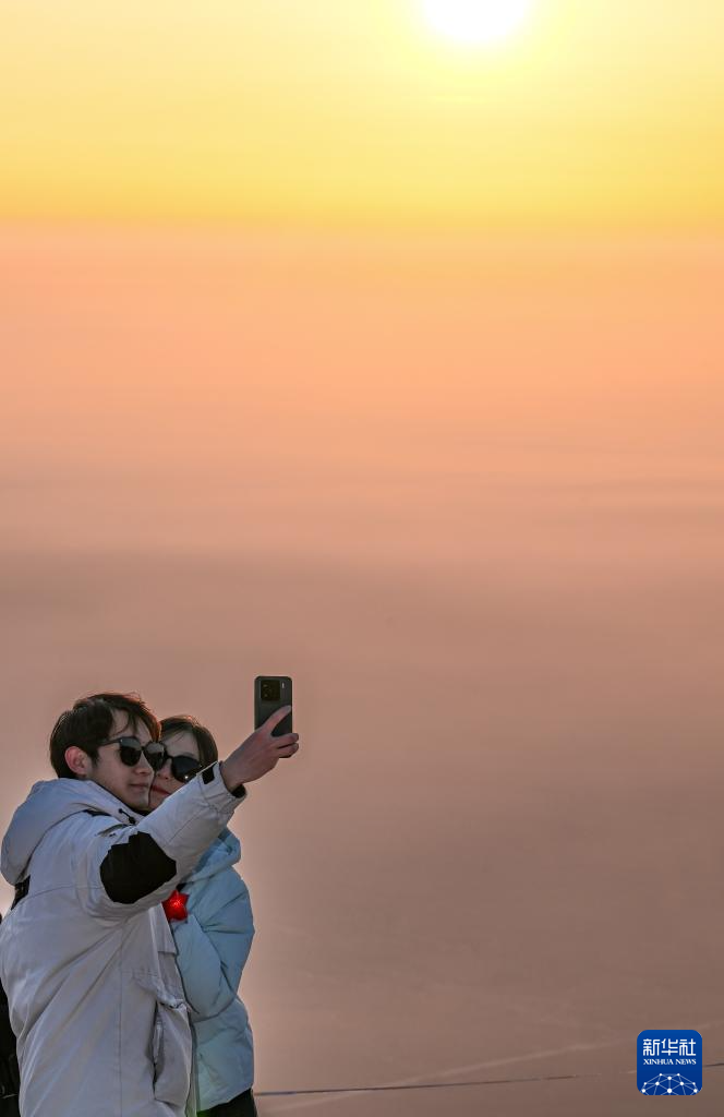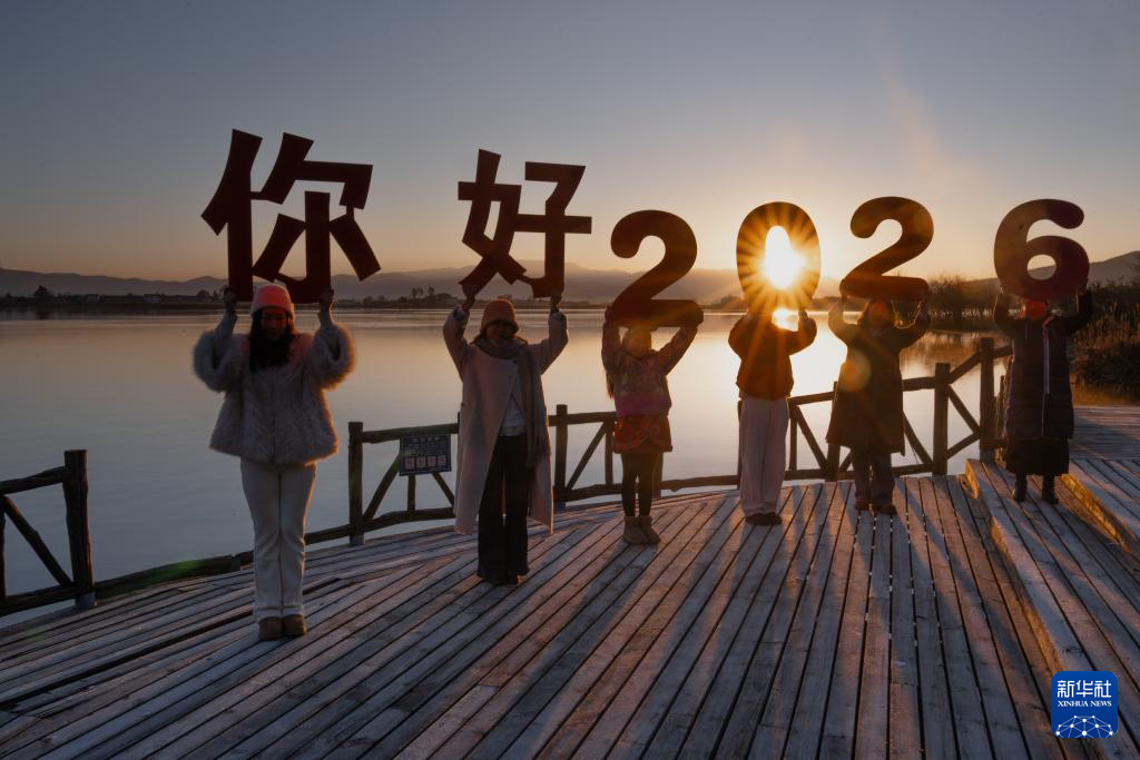 2026年1月1日,人们在云南省大理白族自治州洱源县西湖观景台迎接新年日出。