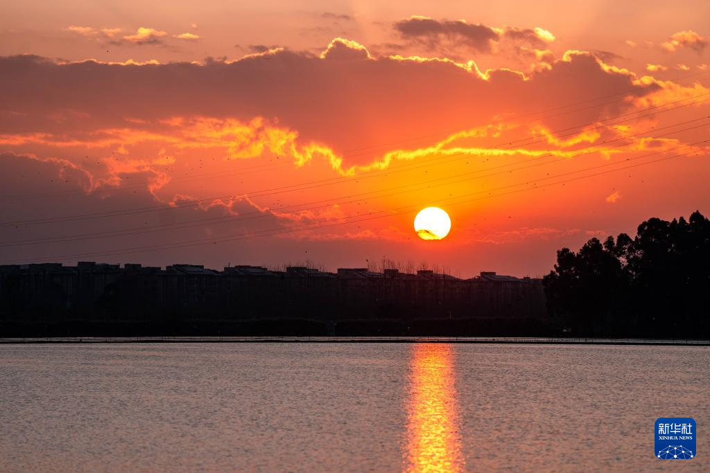 2026年1月1日在云南省昆明市滇池边拍摄的日出。