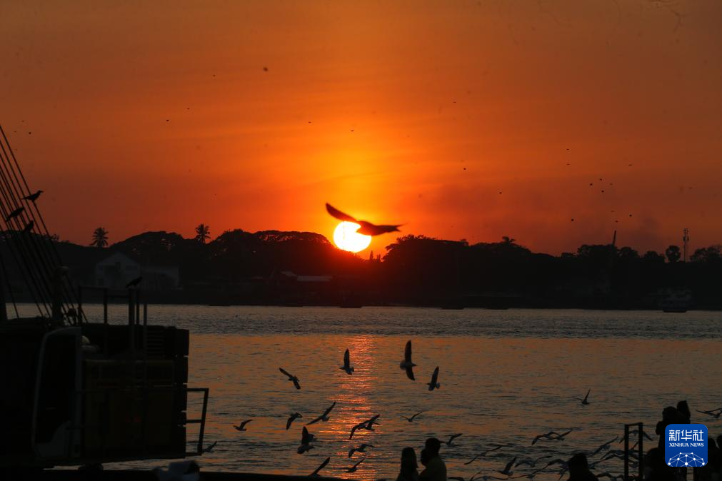 这是12月31日在缅甸仰光拍摄的2025年最后一次日落。