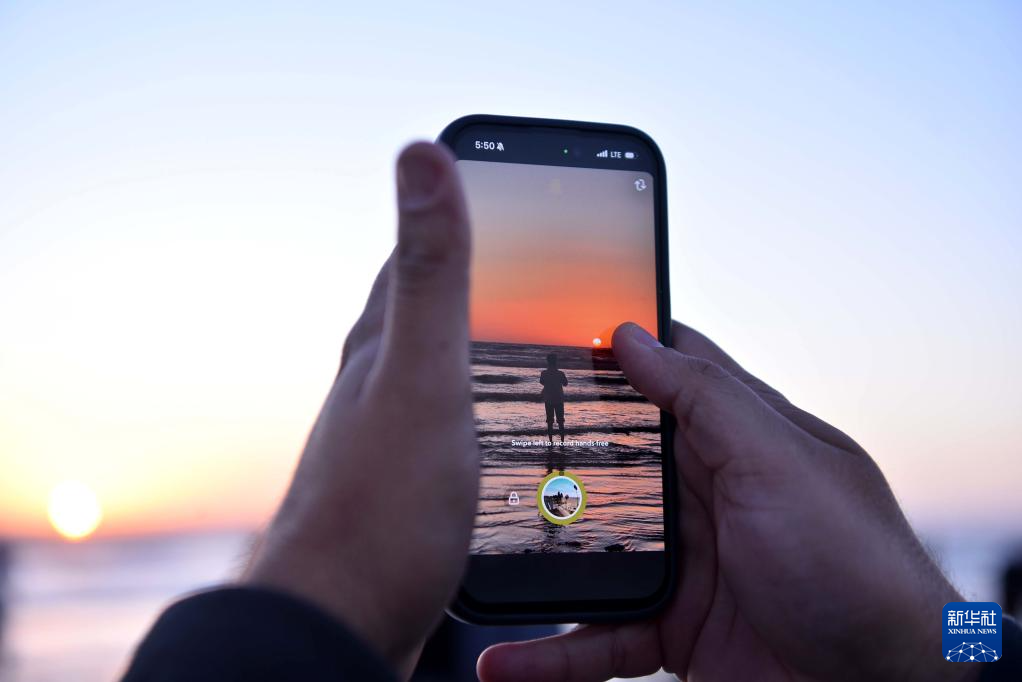 12月31日,一名男子在巴基斯坦卡拉奇海边拍摄2025年最后一次日落。