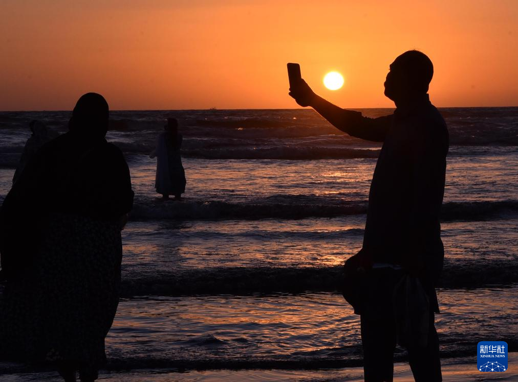 12月31日,人们在巴基斯坦卡拉奇海边欣赏2025年最后一次日落。