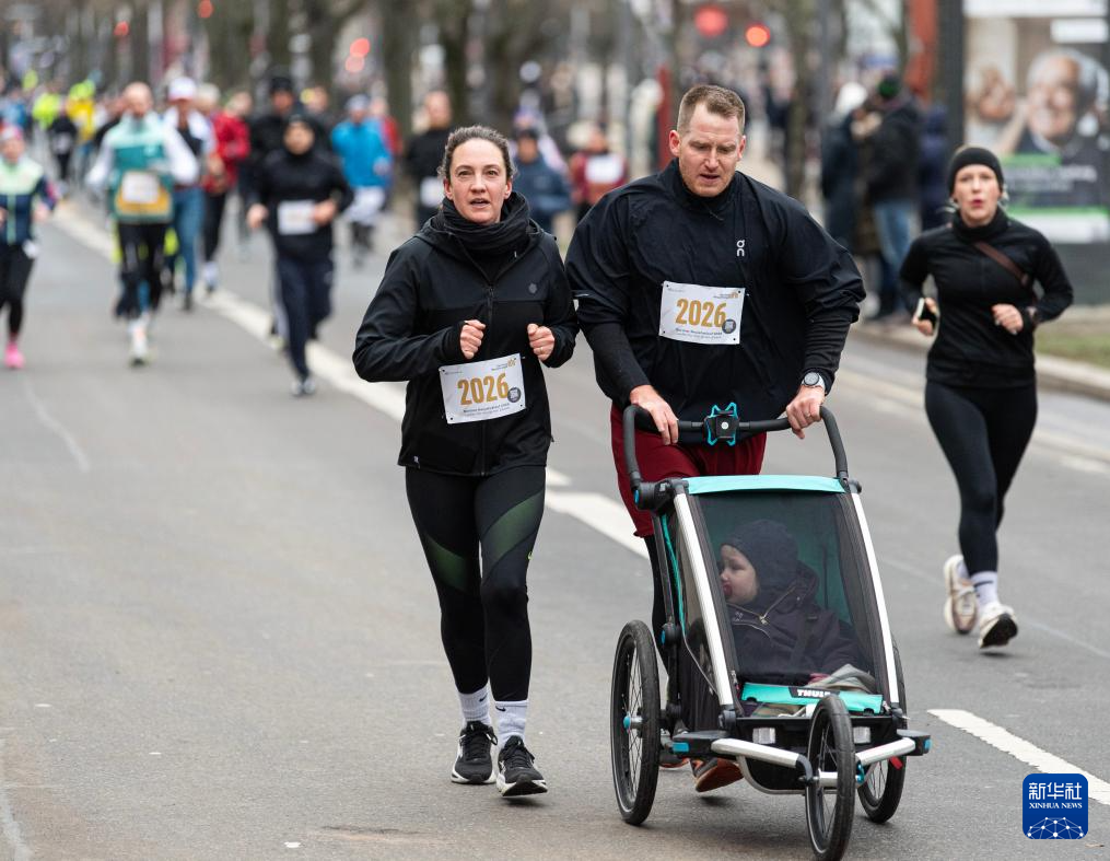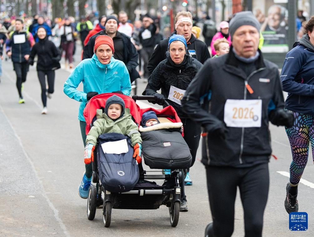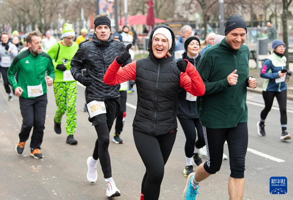 2026年1月1日,人们在德国首都柏林的菩提树下大街参加新年跑活动。
