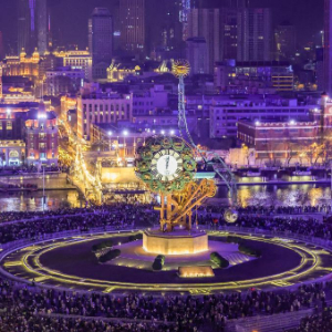 2026年1月1日凌晨在天津市西青区杨柳青古镇拍摄的2026“津夜有约”跨年活动现场。