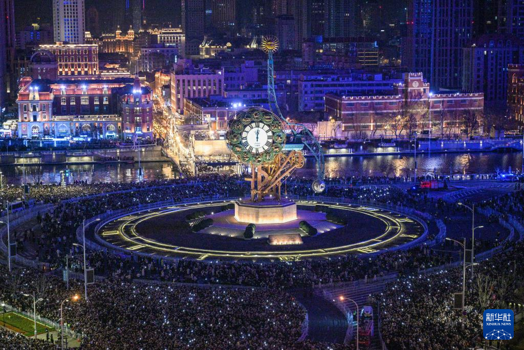 2026年1月1日凌晨,人们在天津世纪钟前迎接新年。