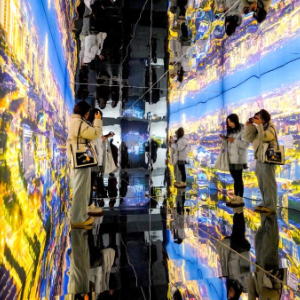 1月2日,家长和小朋友在贵州省贵阳市贵州科技馆体验奇幻元宇宙。