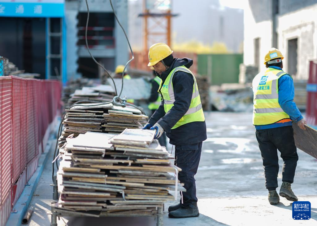 1月2日,工人在位于上海的中建三局一公司灿瑞科技全球芯片研发中心项目工地施工。