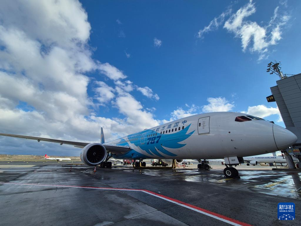 2026年1月2日,部分可享受免签待遇的中国游客乘坐的中国南方航空公司飞机停靠在土耳其伊斯坦布尔机场。